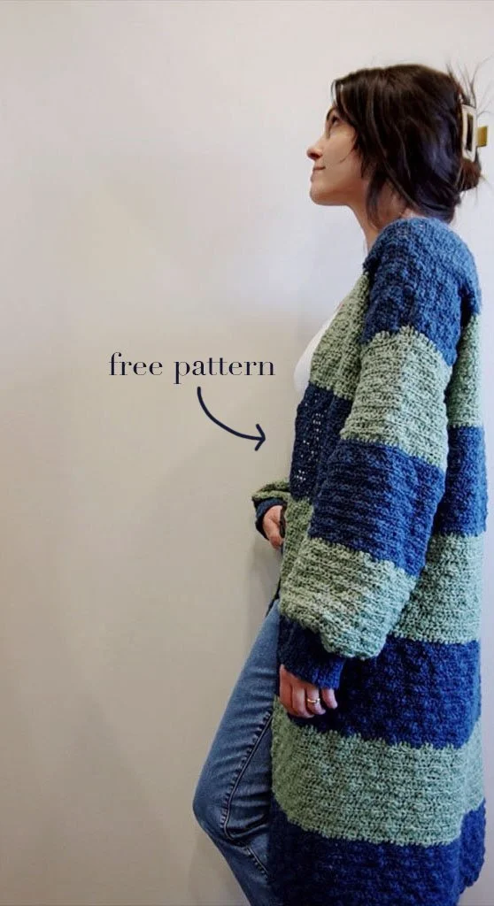 There’s a new sweater here! I’m happy to share this easy striped cardigan, that’s super comfy and laid back—just how I like ‘em. 😊