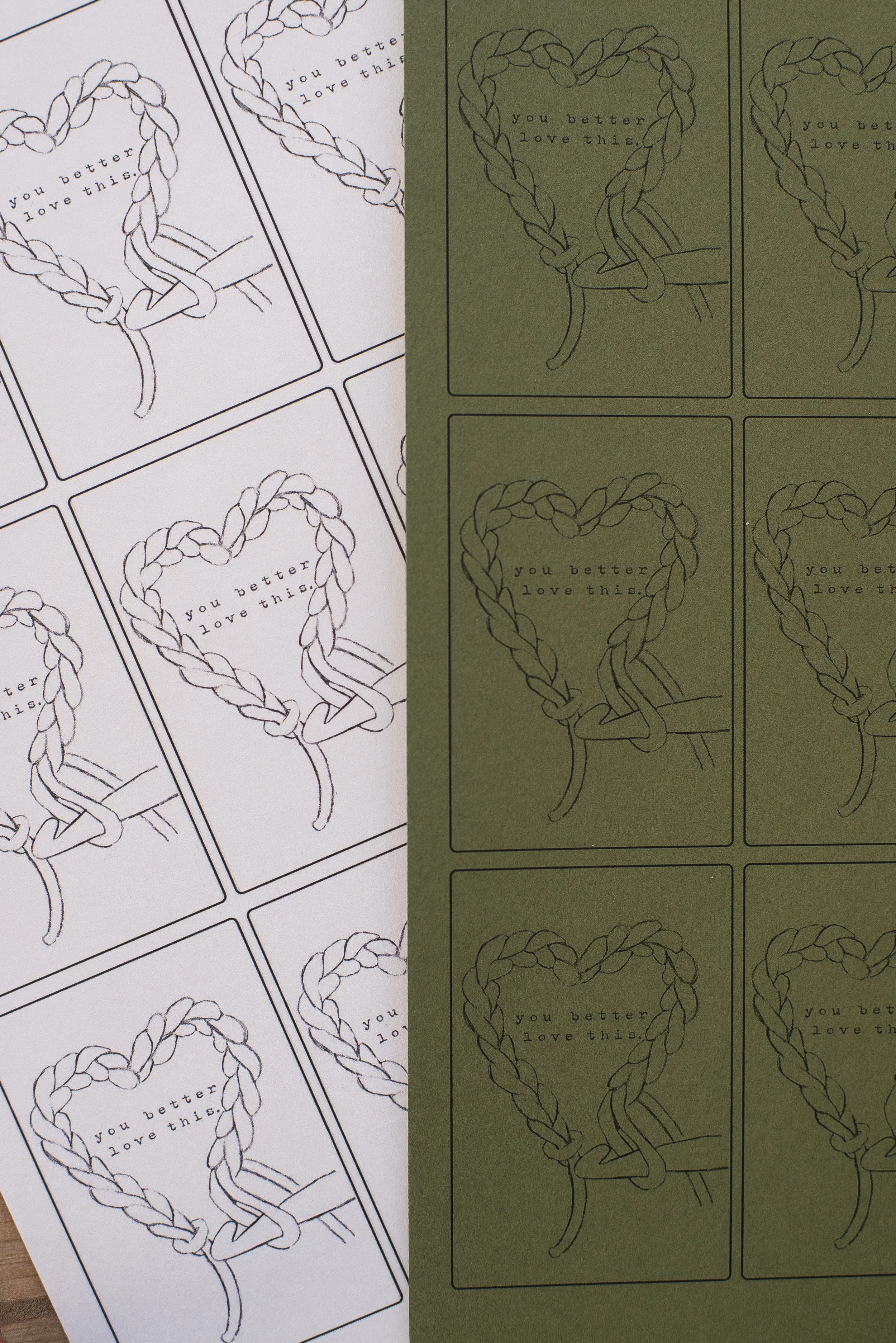 I thought the saying "you better love this" would be a funny tag idea for the right person in your life (ya know, the one that gets your humor, haha) because who hasn't thought that after giving your person their gift after all that hard work?! Plus it features my hand-drawn little crochet heart-- which I am in LOVE with by the way. I want to put it on everything. :)