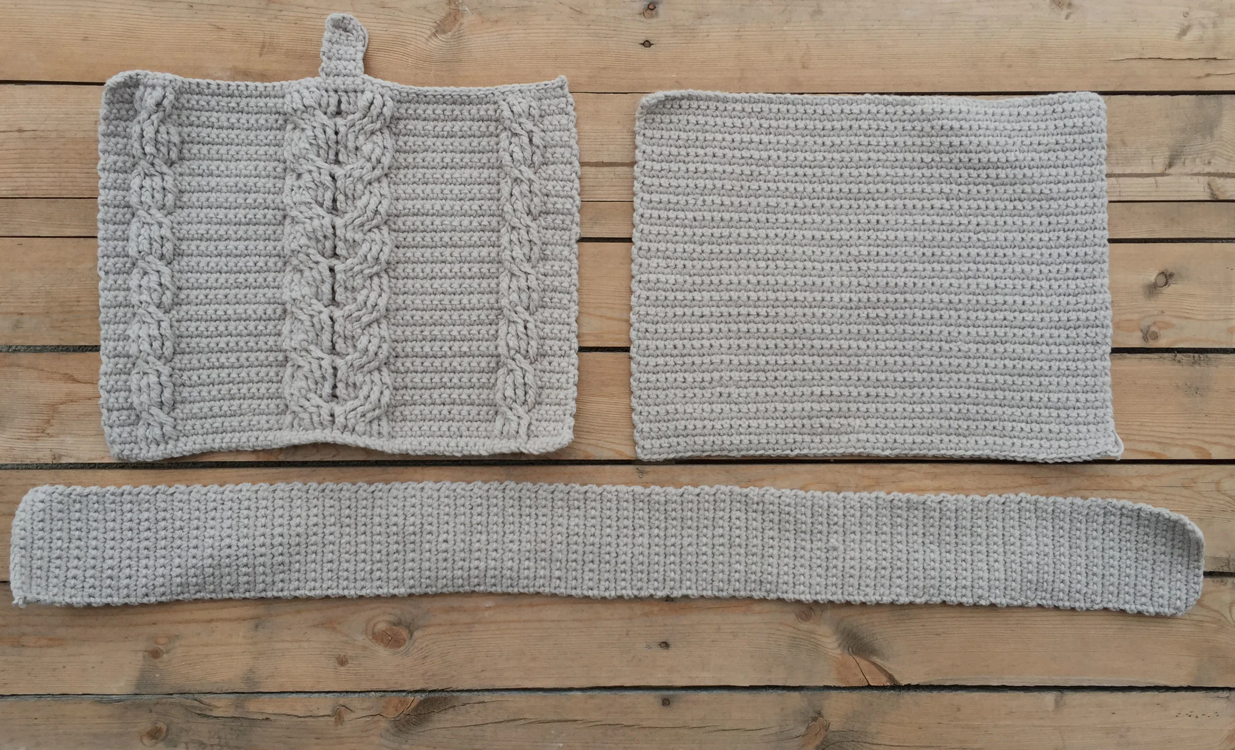 For the crocheted piece that goes around the sides and bottom--I just decided to add stabilizer to the very bottom, because I didn't want the sides to be that stiff. So I just cut a piece of stabilizer about 3.5" x 16" (allowing for some extra room to sew later). See photo below for a visual of that bottom piece.